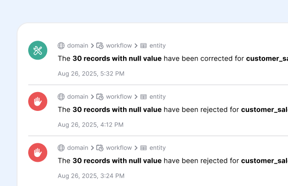 Get instant alerts when data quality issues are detected or rules are triggered.